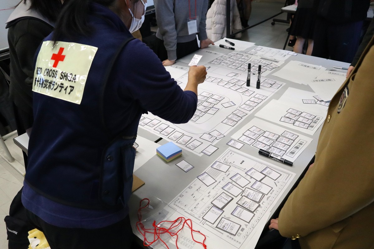 地域高等学校でリーダー研修の一環として実施されている、防災研修会「HUG(避難所運営ゲーム)」に参加しています。