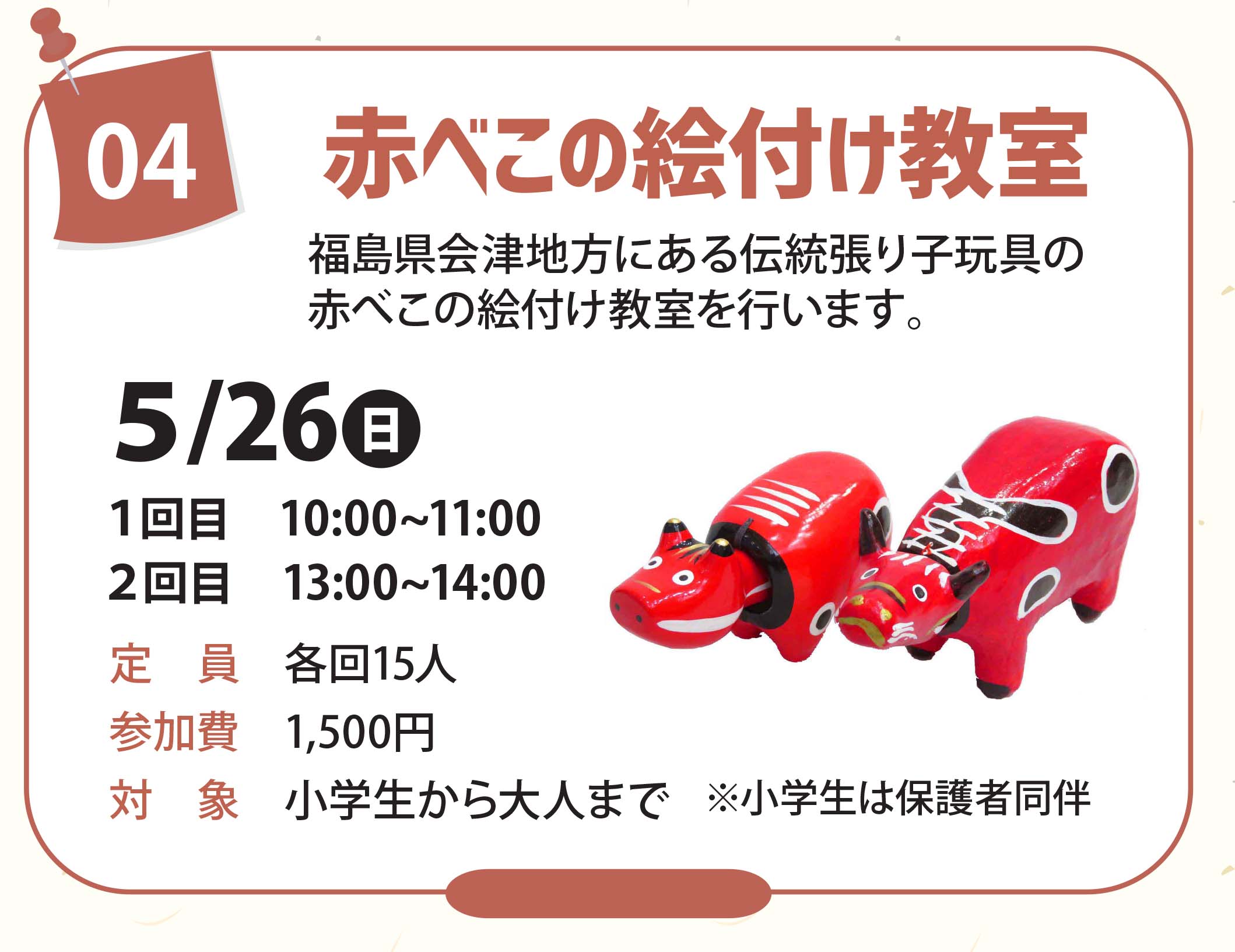 福島県会津地方にある伝統張り子玩具の赤ベコの絵付け教室を行います。
