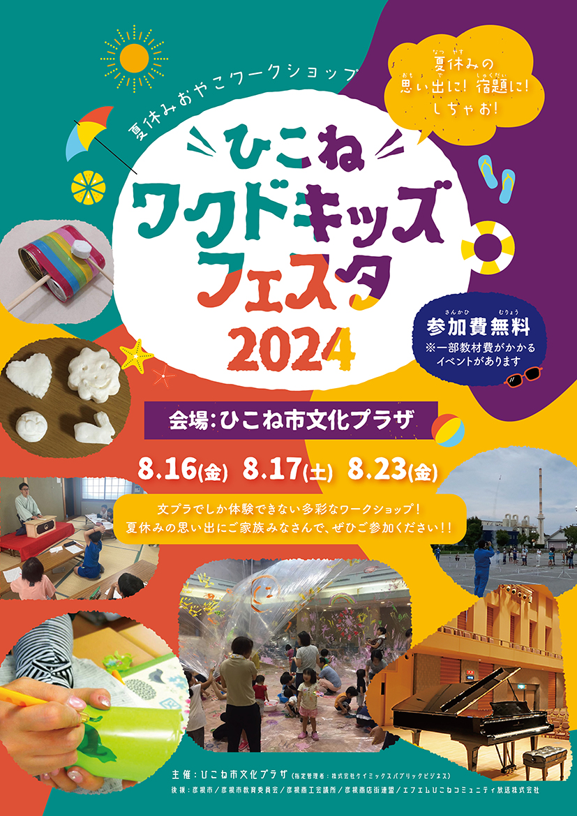 「ひこねワクドキッズフェスタ」は、子どもたちの好奇心を刺激し、楽しく学び、親子で体験できる、ワークショップイベントです。ひこね市文化プラザでしか体験できない多彩なプログラムをご用意しております。