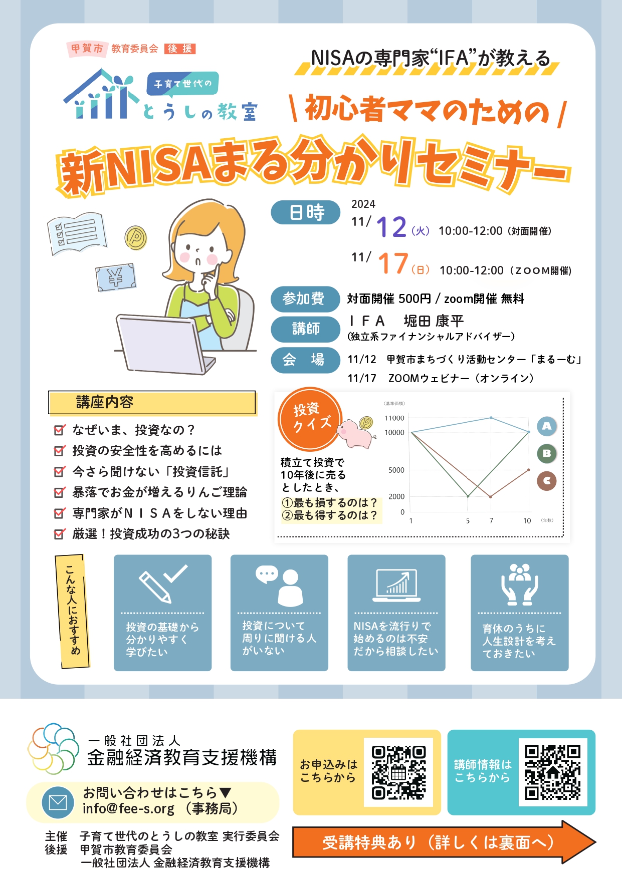 甲賀市教育委員会後援事業 「NISAの専門家”IFA”が教える 新NISAまるわかり講座」