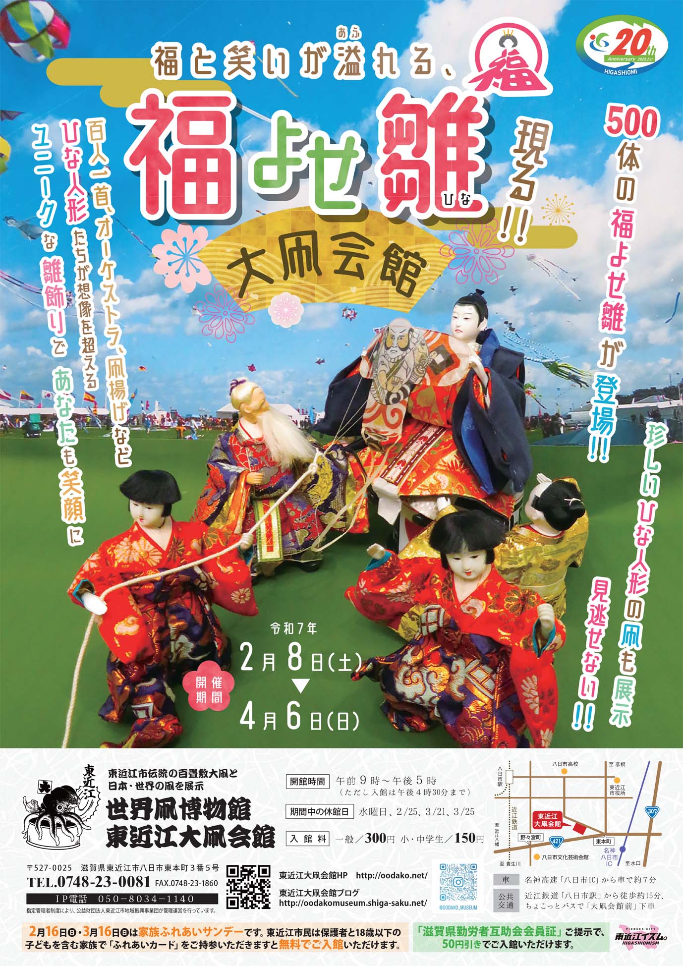 東近江大凧会館では、大人気の「福よせ雛」を今年も2月8日(土)から開催します。