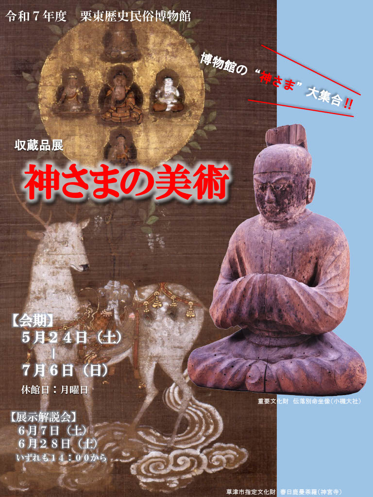 栗東歴史民俗博物館の収蔵品から、神道に関わる美術品を展示し、近江の豊かな宗教文化の一端を紹介します。