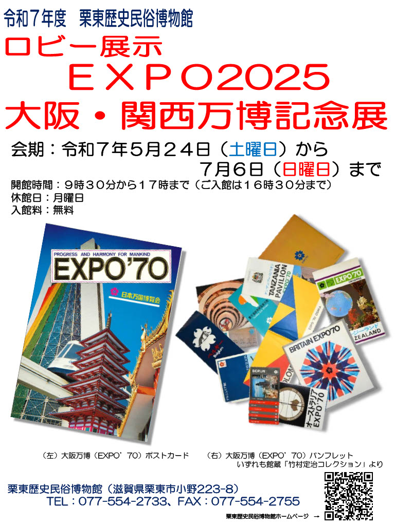 EXPO2025大阪・関西万博の開催を記念して、1970年の大阪万博に関わる資料や、当時の栗東のすがたを紹介します。
