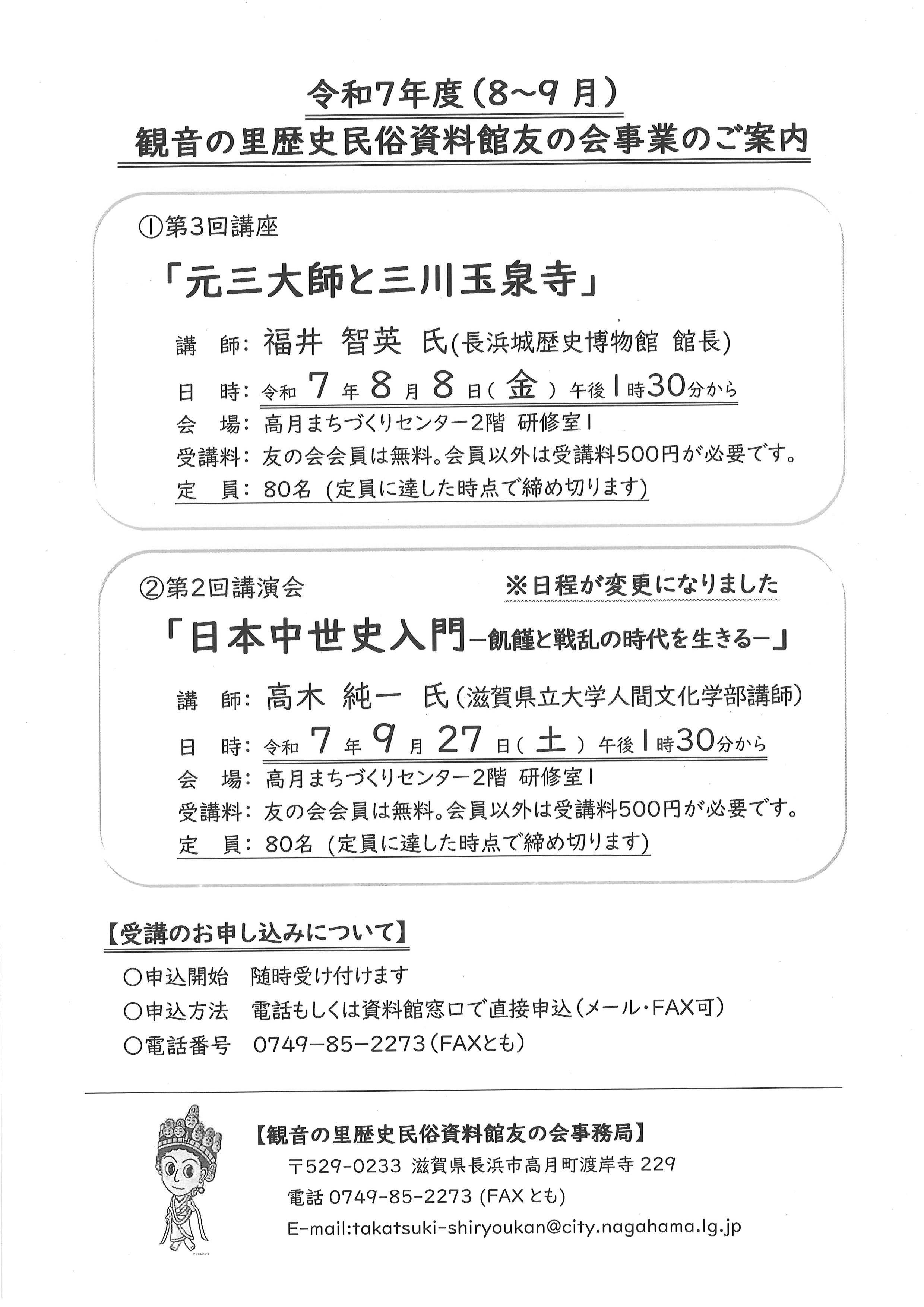 長浜城歴史博物館館長の福井智英氏を講師にお迎えし、「元三大師と三川玉泉寺」と題し、友の会第3回講座を開催します。