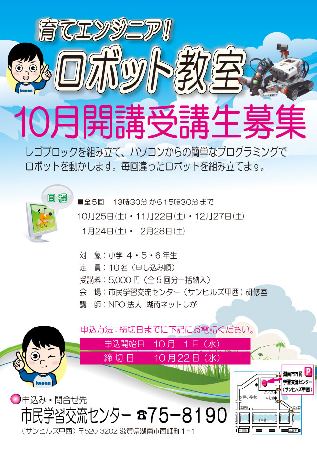 育てエンジニア!ロボット教室 10月開講 【湖南市】