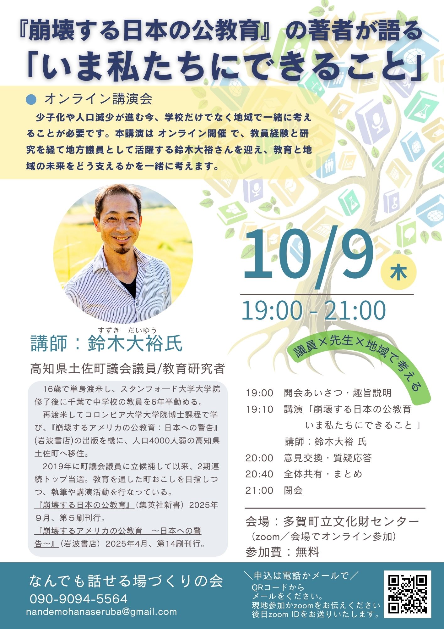究を経て地方議員として活躍する鈴木大裕さんを迎え、教育と地